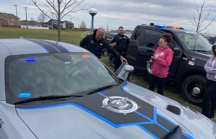 Sheriff Armbrister, Undersheriff Simmons, and deputies interacted with students by showcasing equipment including patrol vehicles, boats, and drones, while also discussing the role of the Sheriff’s Office.